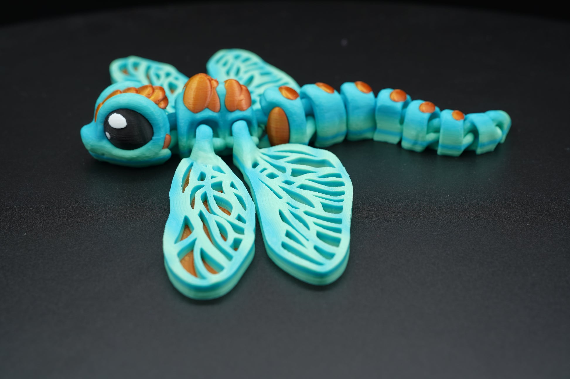 Available in a variety of color combinations. Due to filament variation and the 3D printing process, each Dragon Fly is unique.