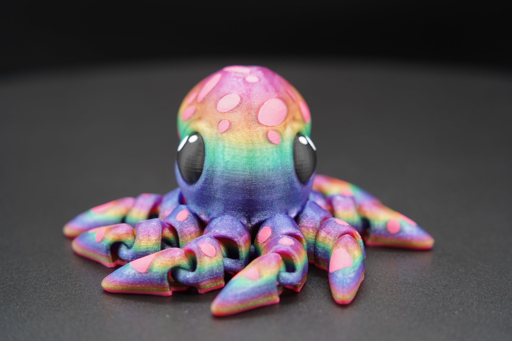 A charming and playful articulated octopus, designed to bring ocean magic and whimsical charm to any desk, shelf, or collection. This Octopus is 3D printed as one complete, fully assembled piece and makes a captivating display item or collectible.