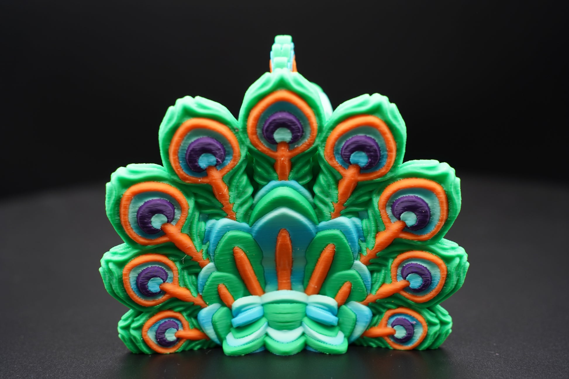 Available in a variety of color combinations. Due to filament variation and the 3D printing process, each Peacock is unique.