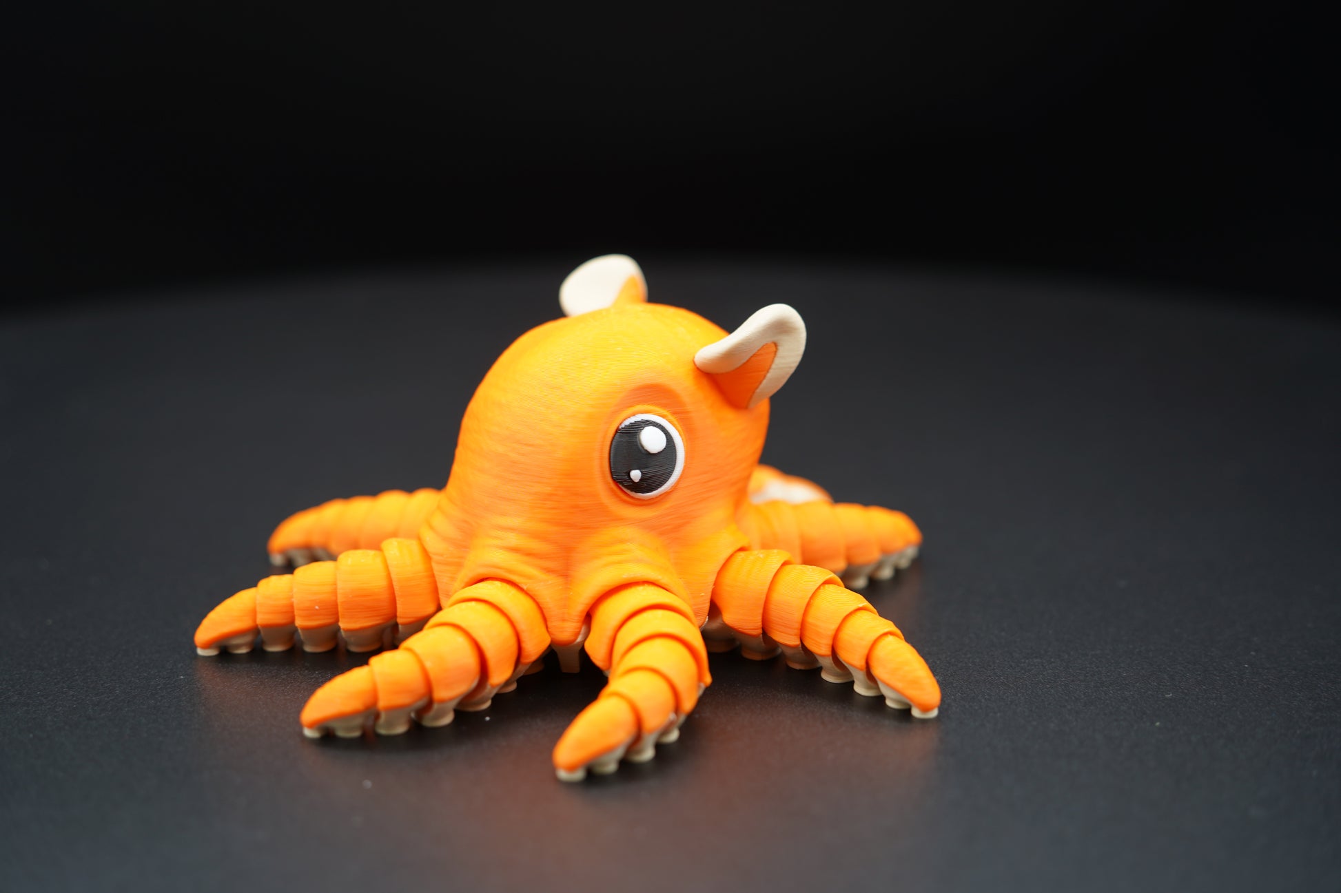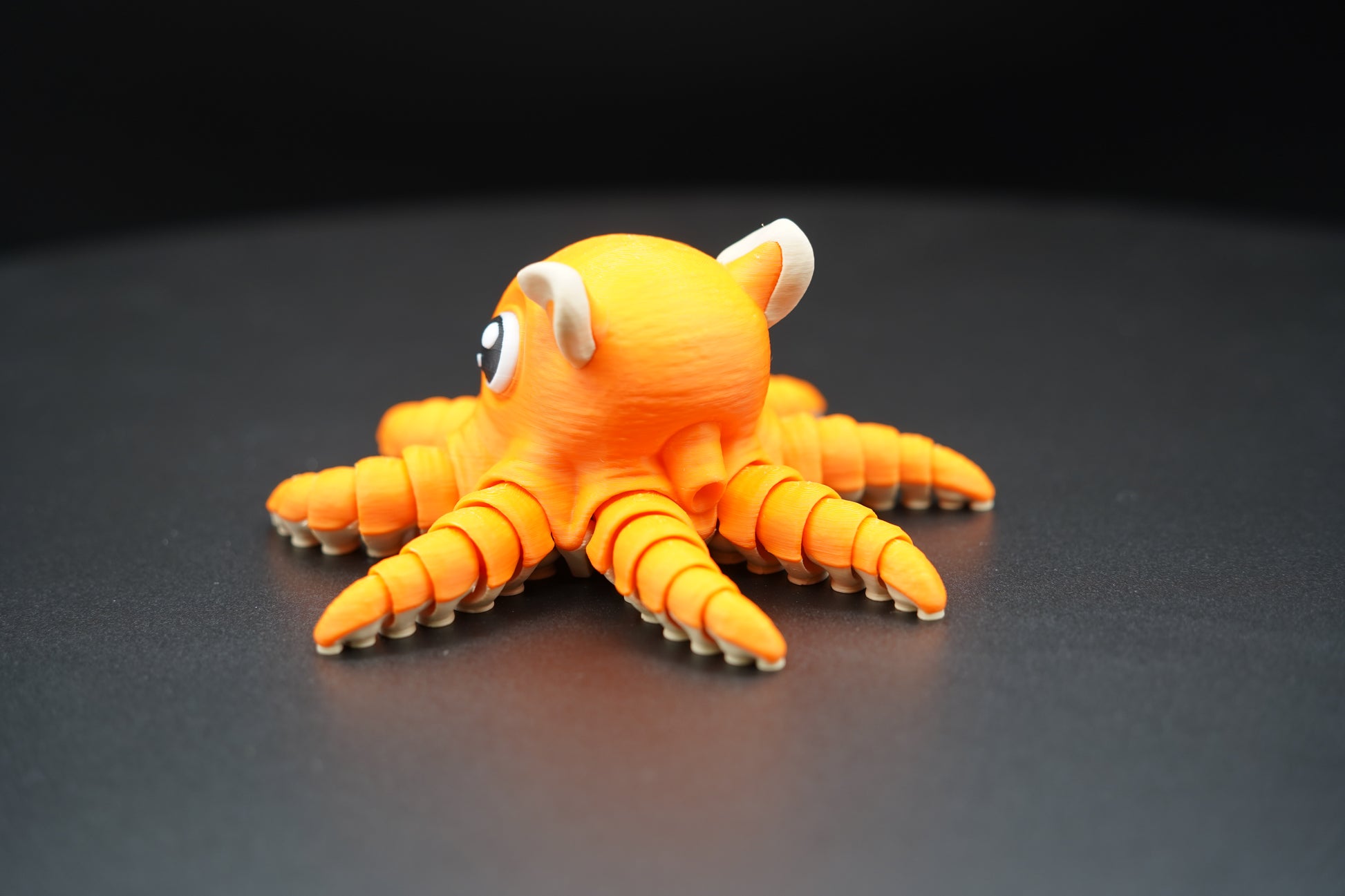 A charming and playful articulated flap jack octopus, designed to bring ocean magic and whimsical charm to any desk, shelf, or collection. This Flap Jack Octopus is 3D printed as one complete, fully assembled piece and makes a captivating display item or collectible.