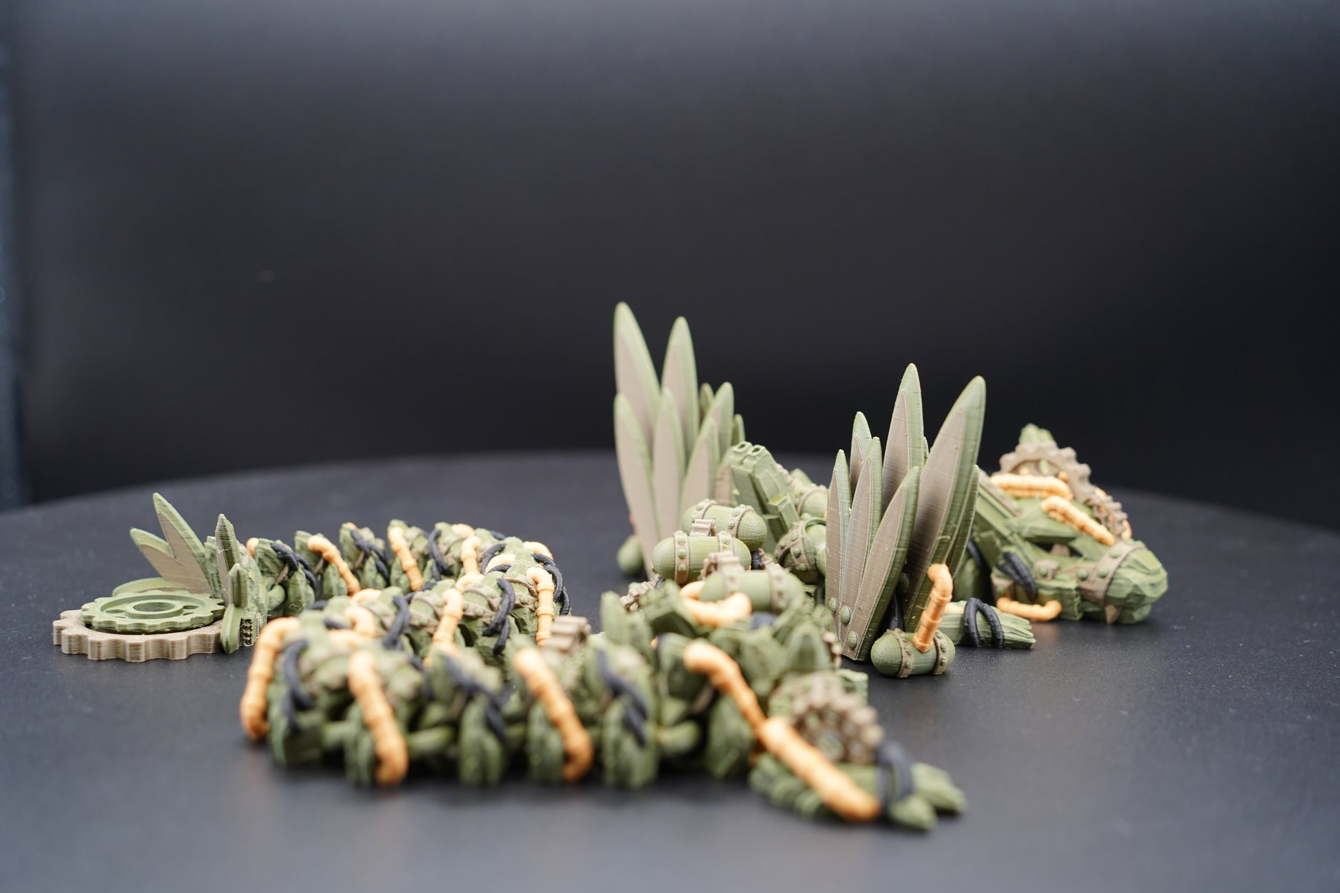 Available in a variety of color combinations. Due to filament variation and the 3D printing process, each Steampunk Dragon Winged is unique.
